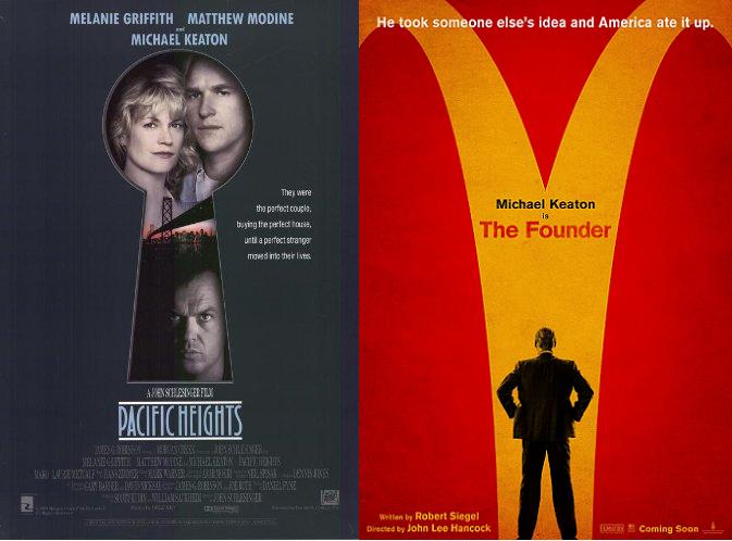 Keaton's star power dried up in the 1990s, sadly, after one more round in the Batsuit and a slew of forgettable vehicles, the consensus nadir being 1998's Jack Frost. 2014's Birdman restored his fortunes, however, and he's since been on a roll thus far. The Founder adds to Keaton's second wind by once again revisiting the shyster grifter persona Keaton does so well and, unlike Pacific Heights, creating a more subtle malevolence that unspools enticingly as the film progresses and without trading in the grease gun for the nail gun.